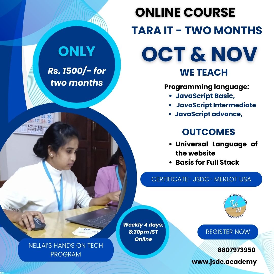 We salute our Armed Forces. Classes are free for their families | USA Cyber Security expert to mentor TARA IT | TIPP session for St. John's College completed | EPIC - Nellai's Job Portal for freshers | USA Data Scientist to mentor TARA IT | Incredible websites by TARA IT students | Kallanai Girls High School - English training |
