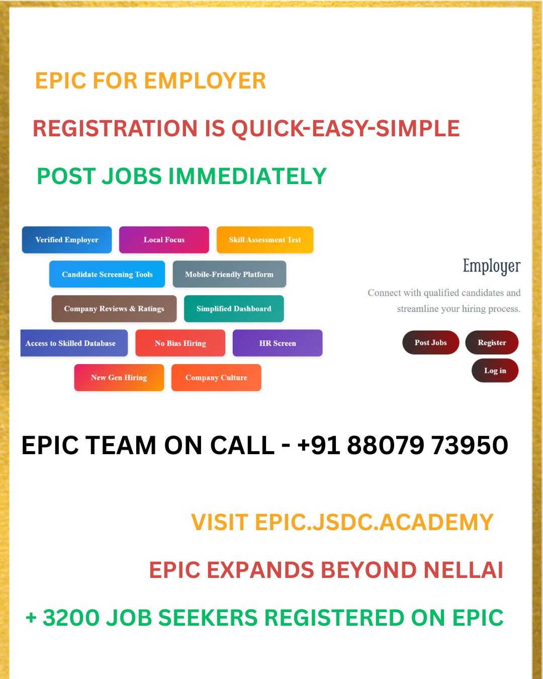 We salute our Armed Forces. Classes are free for their families | EPIC - Nellai's ONLY Job Portal. 3200+ Applicants and growing | New Jobs Posted Everyday at EPIC.jsdc.academy | Incredible websites by TARA IT students | JSDC Signs MOU with Karya